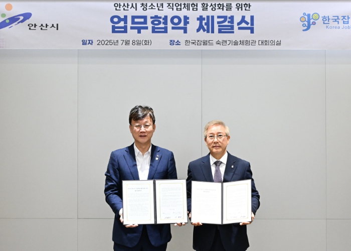 [뉴스스텝] 안산시는 대한민국 최대 종합직업체험관인 한국잡월드와 업무협약(MOU)을 체결하고 관내 청소년의 진로·직업 체험 지원을 위한 기반 강화에 나선다고 8일 밝혔다.