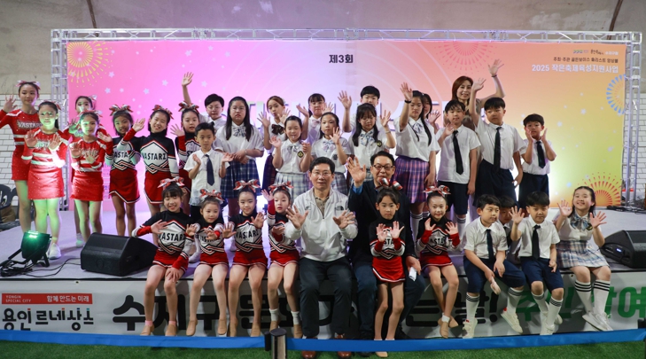 ▲ 19일 수지중앙터널에서 열린 '제3회 수지터널 페스티벌'에서 이상일 시장이 무대 위에 오른 학생들과 기념촬영을 하고 있다. |