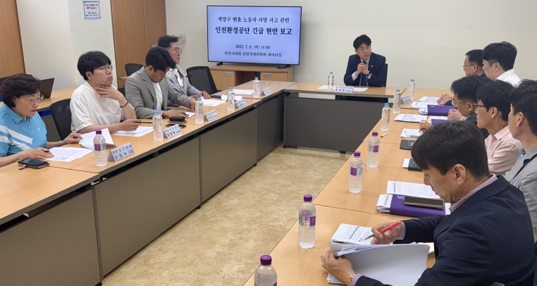 인천시의회는 8일 산업경제위원회 세미나실에서 인천환경공단으로부터 지난 6일 발생한 맨홀 작업 노동자 사망 사고 관련 긴급 현안 보고를 받았다.