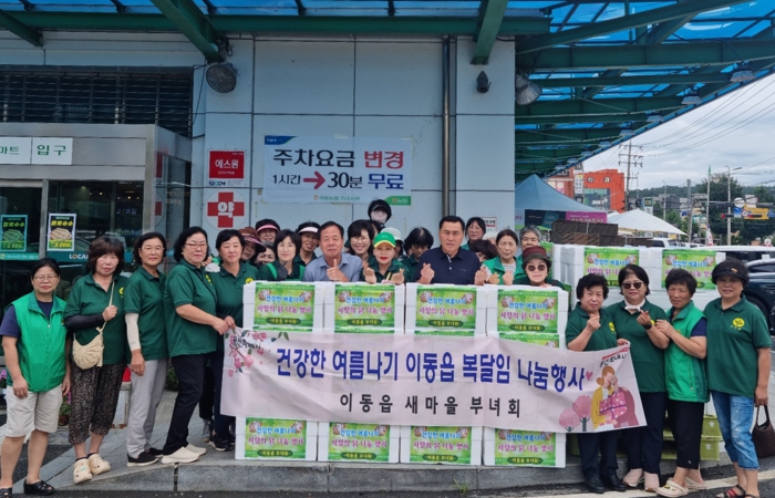이동읍 새마을부녀회는 지난 18일 지역 어르신의 건강한 여름나기를 돕고자 ‘사랑의 복달임 닭 나눔 행사’를 했다. 이 행사는 부녀회가 지난 14일부터 이동농협 천리지점 하나로마트에서 진행한 옥수수 판매 수익금으로 마련됐다. 부녀회는 약 500만 원으로 생닭 총 1100㎏(585마리)를 구입, 지역 내 경로당에 15마리씩 직접 전달했다.