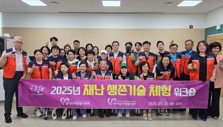 [뉴스스텝] (재)하남시자원봉사센터는 지난 22일, 가족어울림센터에서 재난 통합자원봉사단 40명을 대상으로 경기도자원봉사센터와 함께하는“2025년 재난 생존기술 체험 워크숍”을 개최했다.