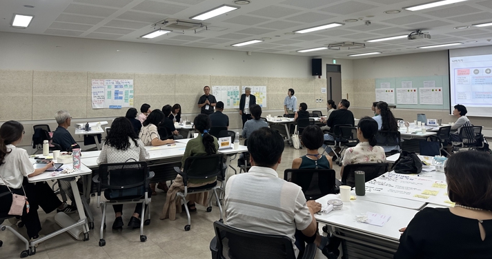 ▲ 2025년 화성특례시 민관소통워크숍 참석자들이 마을공동체 성장단계별 맞춤형 통합지원 방안에 대해 토의하고 있다. |