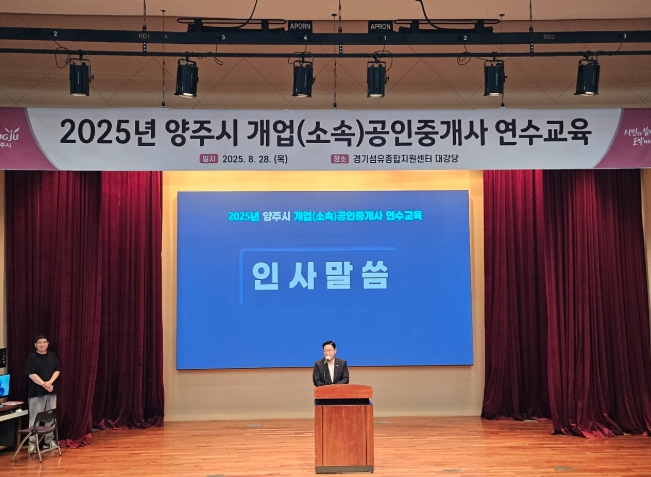 [뉴스스텝] 양주시는 지난 28일 경기섬유종합지원센터 대강당에서 관내 개업·소속 공인중개사 180여 명을 대상으로 ‘2025년 공인중개사 연수교육’을 실시했다.