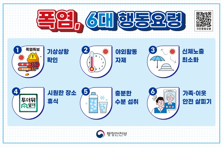 이동옥 행정부지사는 폭염으로 인한 도민의 안전과 피해방지를 위해 행정력을 총동원하여 ▲노후 마을회관 냉방시설 등 집중점검, ▲농업인 낮시간대 활동 자제 홍보 및 예찰, ▲축사(가금류 등) 피해 방지 노력, ▲건설협회 등과 협조하여 도내 건설현장 작업자 폭염대응 행동요령 적극 홍보, ▲전기 수급상태 확인 및 관리 철저, ▲폭염으로 인해 가뭄이 우려되므로 상수도(간이상수도 포함) 공급 관리 철저,▲산불 및 화재 진화 시 소방관 및 산불진화대 안전관리 철저, ▲도시농부, 자원봉사자 근무시간 조정 관리, ▲폭염 열섬현상 완화를 위한 살수차 운행 확대, ▲야외행사(소규모 행사 포함) 현황을 파악하여 폭염대응 관리 철저 등 구체적인 대응방안을 마련할 것을 지시했다.