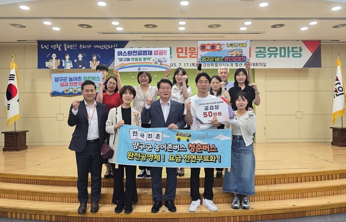 [뉴스스텝] 양구군이 지난 17일 도청 별관 회의실에서 열린 ‘2025년 강원특별자치도 민원 우수사례 공유마당’에서 '남녀노소 누구나 공짜, 양구군 농어촌 버스 완전 공영제 및 요금 전면 무료화' 시행 사례로 공감상을 수상했다.