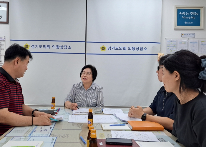 [뉴스스텝] 경기도의회 도시환경위원회 김옥순 의원(더불어민주당, 비례)은 1일 경기도의회 의왕상담소에서 의왕 시청 지역 경제 위생과장 및 관계자들과 ‘의왕 도깨비시장 아케이드 설치 간담회’를 개최했다.