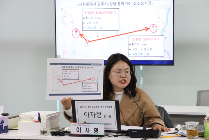 이어 11월 행정사무감사에서는 제2부교육감을 대상으로 신현·능평 지역 학생들의 고교 진학 현실을 알리며 학군 조정의 필요성을 적극 제기했다. 이 의원은 “오포고가 신설되더라도 학생들의 평균 통학거리는 10km, 소요시간은 50분 이상으로 실질적인 교육권 확보가 어렵다”며 “반면 성남 2학군은 평균 2.5km, 통학시간은 16분 내외로 신현중 학생들의 지속적인 성남 학군 배정을 보장해야 한다”고 목소리를 높였다.