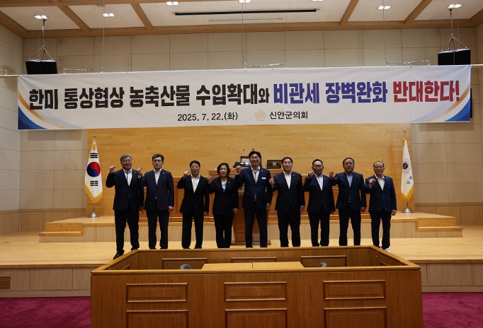 [뉴스스텝] 신안군의회가 정부의 대미 통상협상에서 농축산물 수입 확대 및 비관세 장벽 완화 가능성에 대해 강한 우려를 표하며 ‘전면 반대’ 성명을 발표했다.