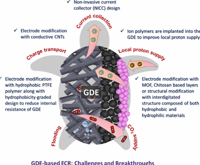 [뉴스스텝] 전남대학교 화학공학부 하준석 교수 연구팀이 전기화학적 이산화탄소(CO₂) 환원 반응을 위한 가스확산전극(GDE) 기술의 최신 연구 동향과 주요 도전 과제에 대한 종합 리뷰 논문을 발표했다.
