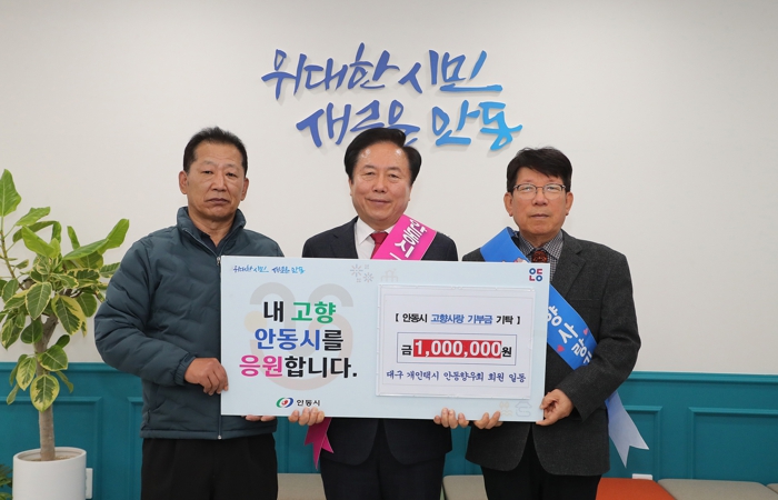 [뉴스스텝] 대구개인택시 안동향우회가 지난 28일 안동시청을 방문해 고향사랑기부금 100만 원을 기탁했다. 이번 기부는 2023년과 2024년에 이어 3년 연속 이어진 뜻깊은 나눔이다.
