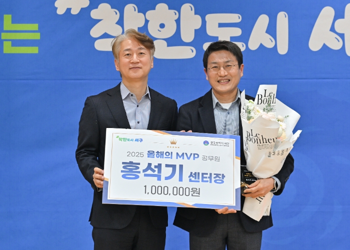 [뉴스스텝] 광주광역시 서구는 ‘2025 올해의 MVP 공무원’으로 홍석기 서구소상공인경영지원센터장을 선정했다고 31일 밝혔다. 서구는 올해 분기별 MVP 공무원 7명을 대상으로 주민·공직자 설문조사와 MVP 선발위원회 평가 점수를 합산해 최종 수상자를 결정했다.