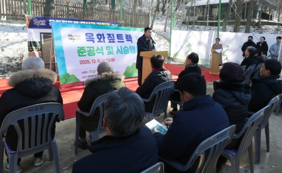 [뉴스스텝] 청주시는 5일 상당구 미원면 옥화자연휴양림(운암옥화길 140)에 산림레포츠 시설인 ‘옥화 짚트랙’을 조성하고 준공식을 개최했다.