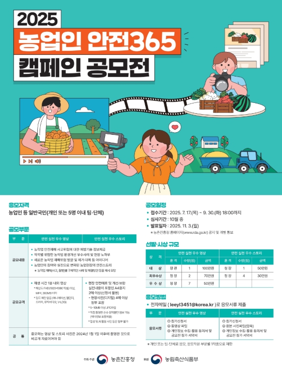 ▲ ‘2025 농업인 안전365 캠페인 영상·스토리 공모전’ 추진 안내문 |