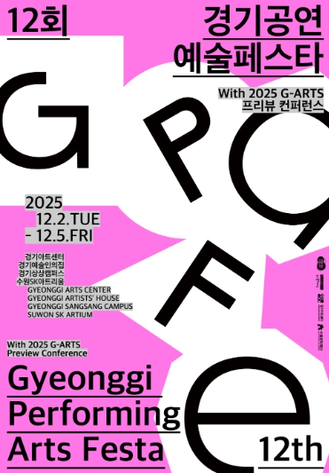 [뉴스스텝] 경기문화재단은 경기도 수원 일대에서 제12회 경기공연예술페스타를 개최한다. 페스타는 2025년 12월 2일부터 5일까지 경기 예술인의 집, 경기아트센터, 경기상상캠퍼스, 수원SK아트리움 등에서 진행되며, 베스트콜렉션, 쇼케이스 데이, 공동 창·제작 쇼케이스, 피치세션, 토크세션, 워크숍 등 다양한 프로그램을 통해 경기 공연예술 생태계의 흐름과 성과를 한눈에 보여줄 예정이다. 또한 경기아트센터 주최 ‘2025 G-ARTS 프리뷰 컨퍼런스’가 동시 개최되며, 보다 풍성한 전문 교류의 장을 마련한다.