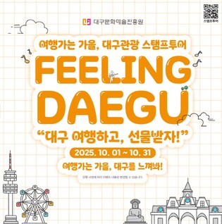 [뉴스스텝] 대구광역시와 대구문예술진흥원관광본부는 문화체육관광부 ‘여행가는 가을’ 캠페인을 연계하여 10월 한 달간 대구를 방문하는 관광객 대상으로 스탬프투어 이벤트를 운영한다.민족 대명절 추석을 맞아 고향을 찾는 귀성객과 가을 여행을 즐기는 국내 관광객들이 대구의 매력을 새롭게 발견할 수 있도록 이벤트를 마련했다.‘여행가는 가을’은 문화체육관광부, 행정안전부, 농림축산식품부, 해양수산부 등 4개 부처와