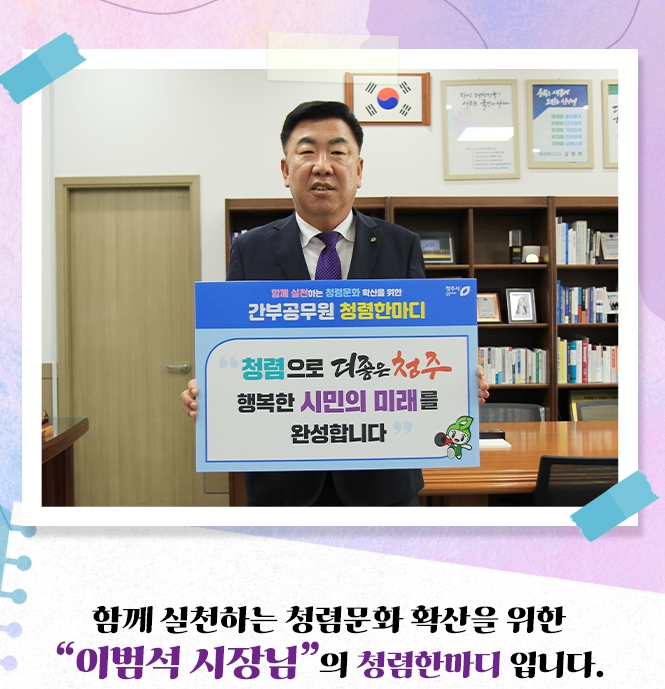 [뉴스스텝] 청주시는 2025년 반부패・청렴도 향상을 위해 1일부터 4급 이상 간부 공무원이 참여하는 ‘청렴 한마디 챌린지’를 실시한다.