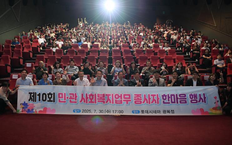[뉴스스텝] 부산 동구는 7월 30일 롯데시네마 광복점에서 관내 20개 민간 사회복지시설 및 공공기관의 사회복지 종사자 220여 명을 초청해 ‘제10회 민·관 사회복지 종사자 한마음 행사’를 개최했다.