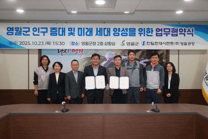 [뉴스스텝] 영월군은 23일 한일현대시멘트(주) 영월공장(공장장 허권회)과 인구 증대 및 미래 세대 양성을 위한 업무 협약을 체결했다고 밝혔다.