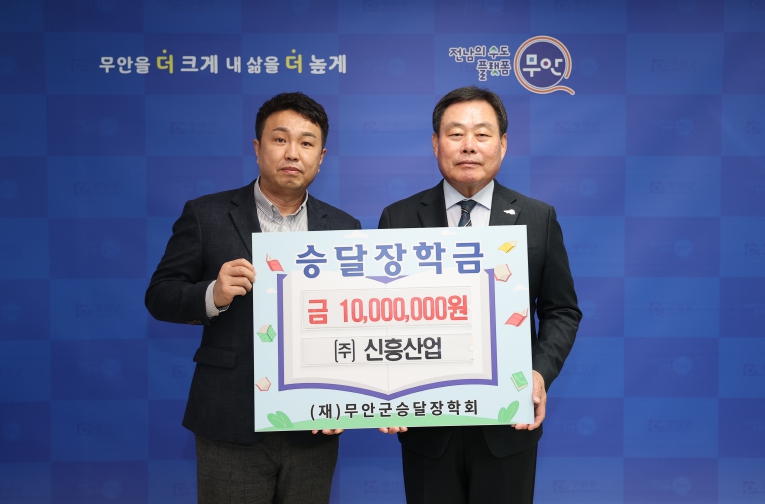 [뉴스스텝] 전남 무안군은 지난 1일 지역인재 육성을 위해 ㈜신흥산업이 장학금 1천만 원을, 청솔수산 윤낙진 대표가 장학금 1백만 원을 각각 (재)무안군승달장학회에 기탁했다고 밝혔다.