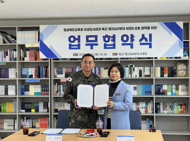[뉴스스텝] 경상북도교육청 의성도서관은 1월 15일 육군 제3260부대 4대대, 의성군 가족센터와 각각 지역 독서문화 활성화를 위한 업무협약식을 체결했다고 밝혔다.