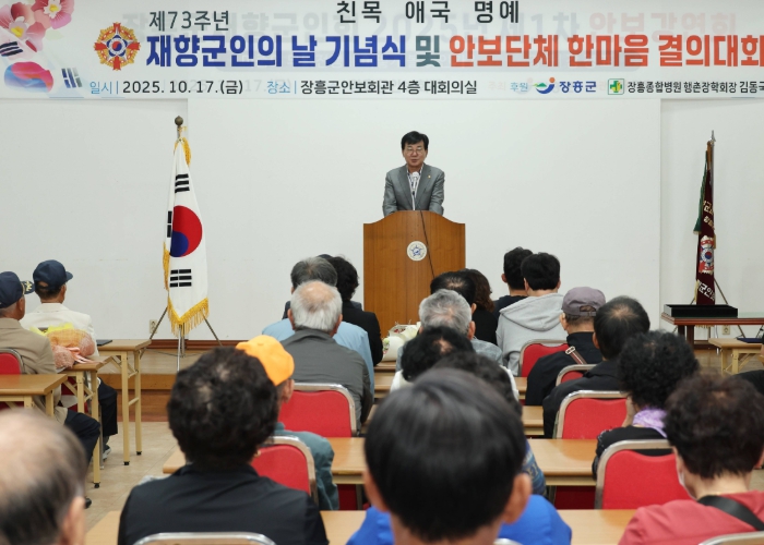 [뉴스스텝] 장흥군은 17일 안보회관에서 제73주년 재향군인의 날 기념식 및 안보결의대회를 개최했다고 밝혔다.