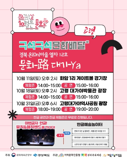▲ 고령군 '문화路 대가ya', 10월 문화의 달 맞아 3회 공연 개최 |