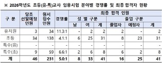 [뉴스스텝] 대전시교육청은 2026학년도 대전시 공립 유치원·초등학교·특수학교(유치원·초등) 교사 임용후보자 선정경쟁시험 최종합격자를 1월 28일 오전 10시, 시교육청 누리집(고시/공고)을 통해 발표했다.이번 임용시험은 총 46명 선발 예정에 231명이 지원하여 평균 5대 1의 경쟁률을 기록했다. 특히 수험생들은 지난해 11월 실시된 1차시험(교직논술, 교육과정)부터 올해 1월 2차시험(교직적성 심층면접