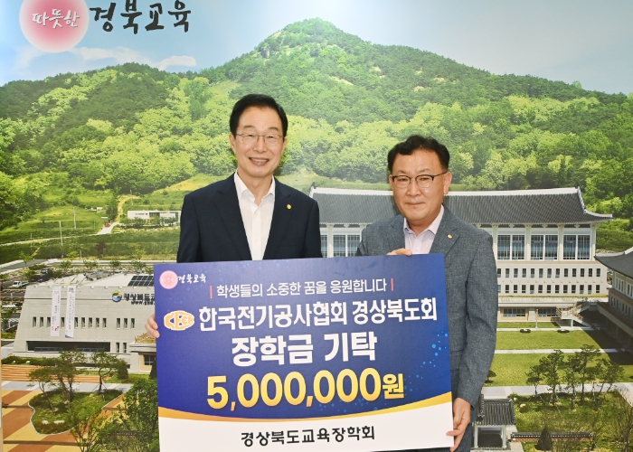 [뉴스스텝] 재단법인 경상북도교육장학회는 5일 본청 접견실에서 한국전기공사협회 경상북도회와 500만 원의 장학금 기탁식을 가졌다고 밝혔다.