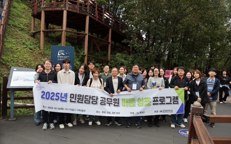 [뉴스스텝] 평창군은 민원 담당 직원 30여 명을 대상으로 충북 단양군 및 제천시 일원에서 16일과 17일 이틀에 걸쳐 2025년 민원 담당 공무원 마음 쉼표 프로그램을 운영한다.