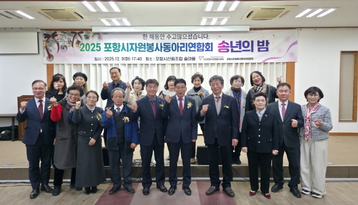[뉴스스텝] (사)포항시자원봉사센터 소속 포항시자원봉사동아리연합회(회장 김규태)는 지난 9일 한 해 동안 지역사회 나눔 활동에 참여한 회원들을 격려하기 위해 ‘2025 포항시자원봉사동아리연합회 송년의 밤’을 개최했다.