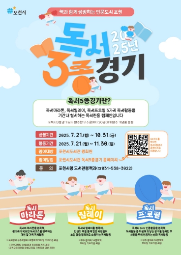 [뉴스스텝] 포천시는 책과 함께 성장하는 인문도시 조성을 위해 오는 7월 21일부터 11월 30일까지 ‘2025년 포천시 독서 3종경기’를 운영한다.