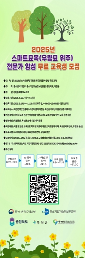 [뉴스스텝] (재)충북테크노파크(충북TP)는 중소벤처기업부, 중소기업기술정보진흥원, 충청북도, 옥천군이 주최하고 충북테크노파크가 주관하는 ‘2025년 옥천 스마트묘목(우량묘 위주) 전문가 양성 무료 교육’ 참가자를 모집한다고 20일 밝혔다.