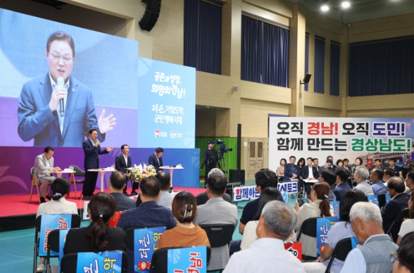 [뉴스스텝] 경상남도는 22일 거창군 다목적체육관에서 ‘도민 상생토크’를 열고, 지역 현안과 정책 방안에 대해 자유롭게 의견을 나눴다.
