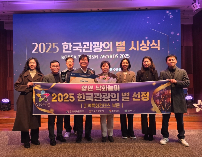 이날 시상식에 참석한 석욱희 함안군 부군수는 “큰 상을 수상하게 되어 매우 영광스럽고, 이를 계기로 함안낙화놀이 중심의 글로벌 야간관광 특화도시 조성에 더욱 박차를 가하겠다”고 밝혔다.