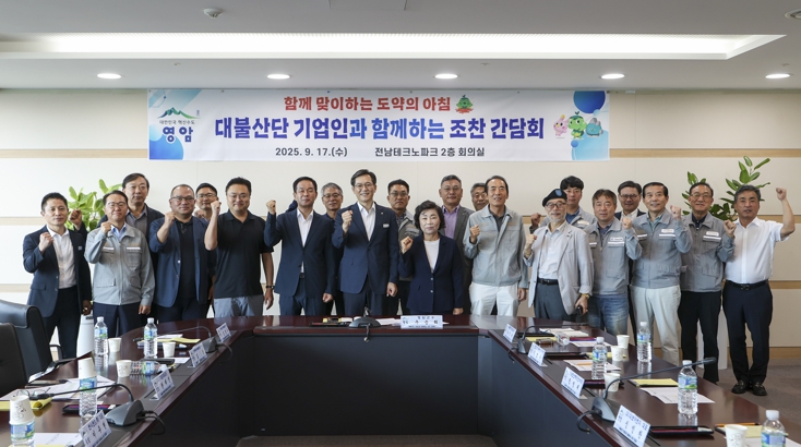 [뉴스스텝] 영암군이 17일 조선해양센터에서 ‘대불산단 기업인과 함께하는 조찬 간담회’를 열었다.