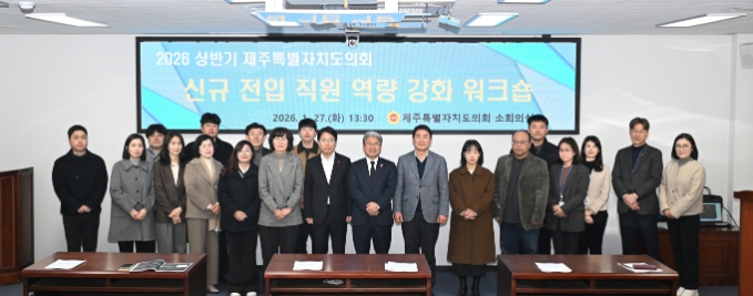 [뉴스스텝] 제주특별자치도의회 의회운영위원회는 지난 1월 27일, 도의회 의사당 소회의실에서 2026년 상반기 정기인사로 전입한 직원 및 실무 역량 배양이 필요한 직원들을 대상으로 ‘역량 강화 워크숍’을 개최했다.