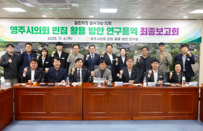 [뉴스스텝] 영주시의회 의원연구단체‘빈집 활용방안 연구회’는 11월 6일 시의회 소회의실에서 '영주시 빈집 활용방안 연구용역 최종보고회'를 열고, 지역 내 빈집 문제 해결과 활용방안에 대한 심층 논의를 진행했다.