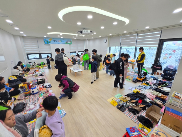 [뉴스스텝] 경산시가족센터는 8일 옥산공동육아나눔터에서 돌봄품앗이 가족과 지역 주민이 함께하는 ‘행복 나눔 장터’ 바자회를 운영했다.