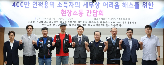 [뉴스스텝] 국세청은 9월 10일 국세청장 및 주요 간부들과 인적용역 소득자 단체들이 참석한 가운데 「400만 인적용역 소득자의 세무상 어려움 해소를 위한 현장소통 간담회」를 가졌다고 밝혔다.