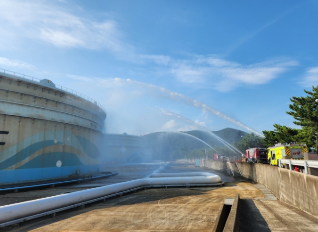 [뉴스스텝] 경상남도 소방본부(본부장 이동원)는 28일 거제시 일운면 소재 한국석유공사 석유비축기지에서 지진 발생에 따른 원유 누출과 화재 대응을 위한 통합 대응훈련을 성공적으로 실시했다고 밝혔다.