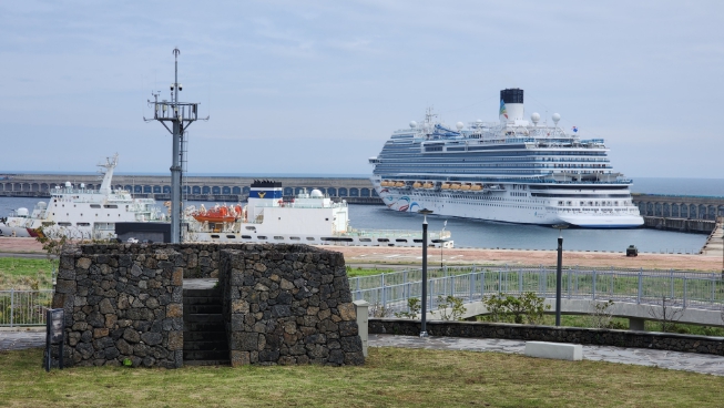 ▲ 강정항 접안된 아도라 크루즈선 |