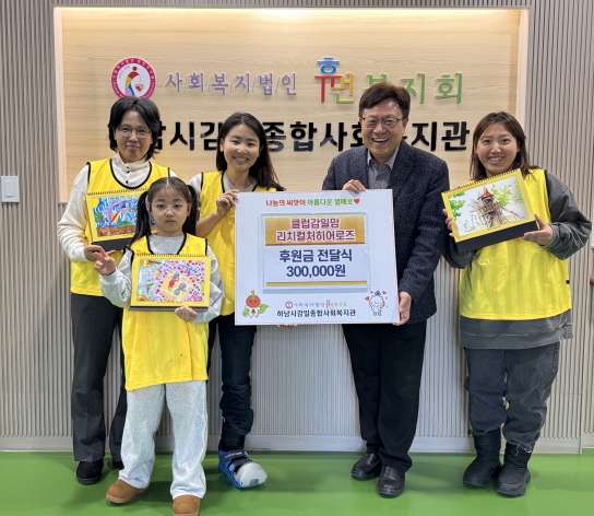 이날 전달된 후원금은 클럽감일맘 리치컬처히어로즈에서 하남시 마을공동체 지원사업 공모에 선정된 지원비를 달력으로 제작하여 판매한 수익금으로, 300,000원의 수익금을 전달했다.