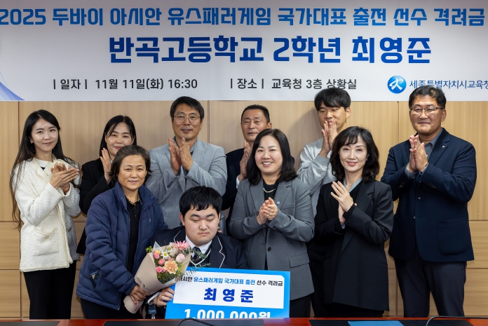 [뉴스스텝] 세종특별자치시교육청은 반곡고등학교 2학년 최영준 학생이 12월 7일부터 14일까지 아랍에미리트 두바이에서 열리는 ‘두바이 2025 Asian Youth Para Games(아시안 유스패러게임)’ 뇌병변장애(F33) 원반던지기 종목에 국가대표로 출전함에 따라 함께 축하하고 격려했으며, 지원금 100만 원을 전달했다고 밝혔다.