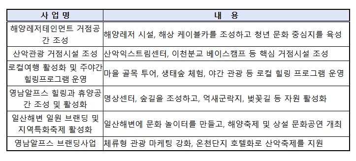 | ▲ 울산 해양산악레저 특구 특화사업 내역(총 6개) |