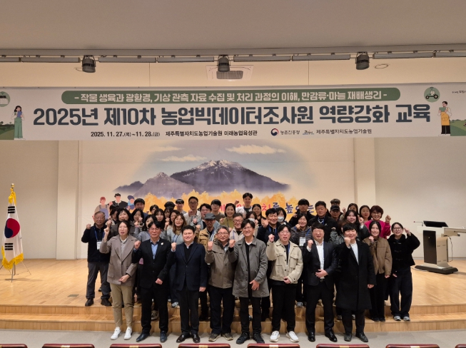 [뉴스스텝] 제주특별자치도 농업기술원(원장 고상환)이 27일부터 28일까지 미래농업육성관 대강당에서 ‘2025년 농업빅데이터조사원 역량강화 교육’을 연다.