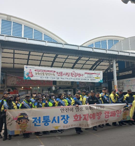 [뉴스스텝] 경산남성·여성의용소방대는 민족 대명절인 설을 앞두고 2월 10일, 경산공설시장 일대에서 안전하고 따뜻한 명절 분위기 조성을 위한 ‘전통시장 화재예방 캠페인’을 실시했다.