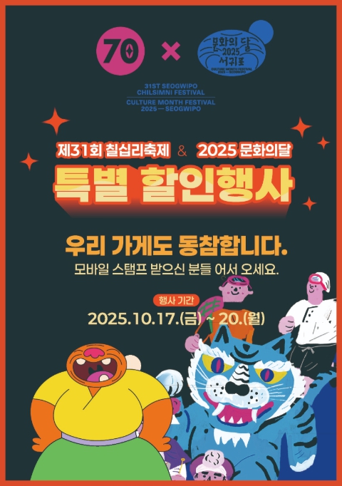 [뉴스스텝] 서귀포시는 ‘제31회 서귀포칠십리축제 & 2025 문화의달 행사’를 맞아 지역 상권 활성화를 위한 다양한 연계 이벤트를 운영한다고 밝혔다.