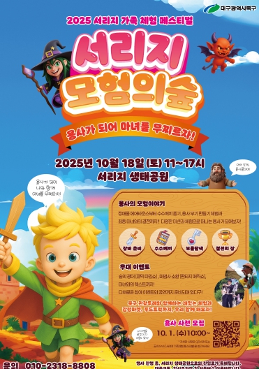 [뉴스스텝] 대구 북구청은 오는 10월 18일 동호동 서리지 생태공원 일원에서 '2025 서리지 가족 체험 페스티벌 – 서리지, 모험의 숲'을 개최한다고 밝혔다.