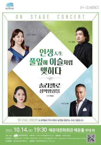 [뉴스스텝] 해운대문화회관은 10월 14일 해운홀에서 ‘온 스테이지 콘서트 솔라첼로 성악앙상블’을 개최한다.